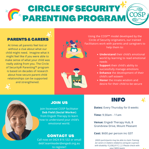 This program is for parents and carers (relevant for those providing care for neurodivergent and/or neurotypical children). The program is delivered by Engedi’s Social Worker (licensed facilitator of COSP) and Psychologist.